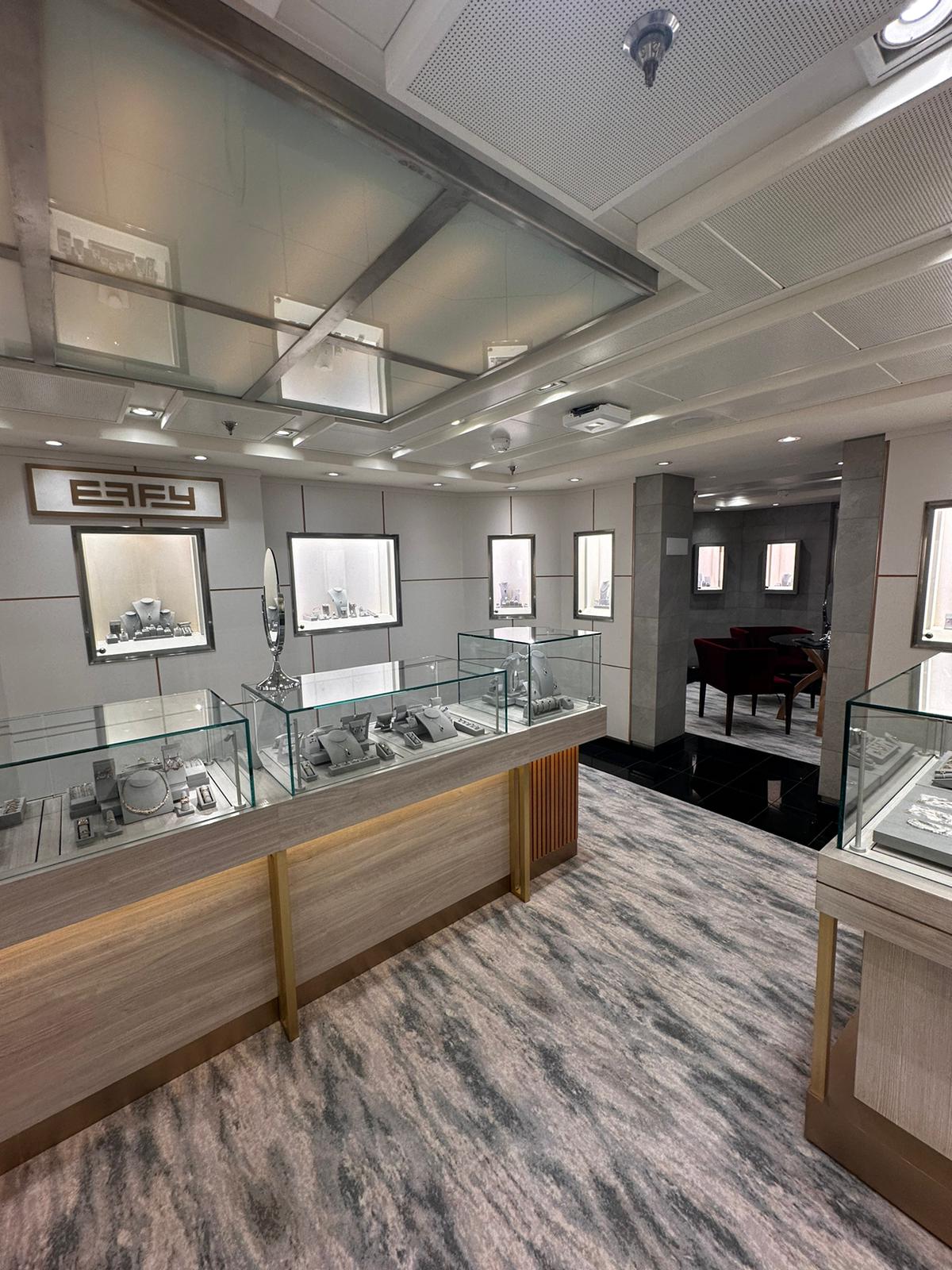 We successfully completed the full creation of a new EFFY Jewelry store onboard the Seabourn Sojourn.